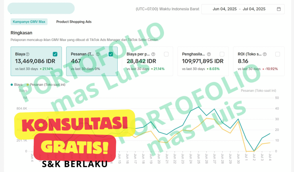 Bukti Hasil Optimasi akun Tiktok Seller klien